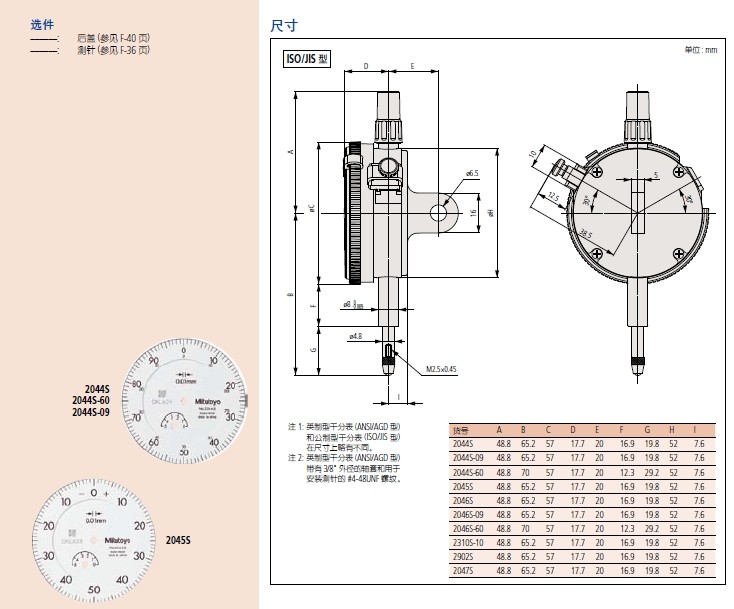 三豐指針式千分表2046S