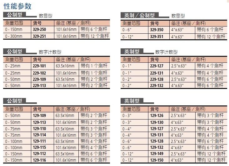 特點 ? ?4mm 可更換桿,底端研磨,測量范圍廣。 ? 桿的長度以25mm 為增量進行調節。 ? 棘輪鎖定裝置可保持恒定測力。 ? 帶有測桿夾鉗。 ? 帶有SPC 數據輸出(329 系列)。 ? 帶有數字計數器(229 系列)。