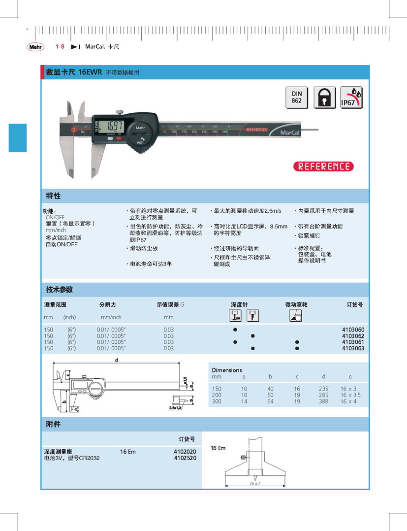 德國馬爾0-150mm數顯卡尺16EWR4103060