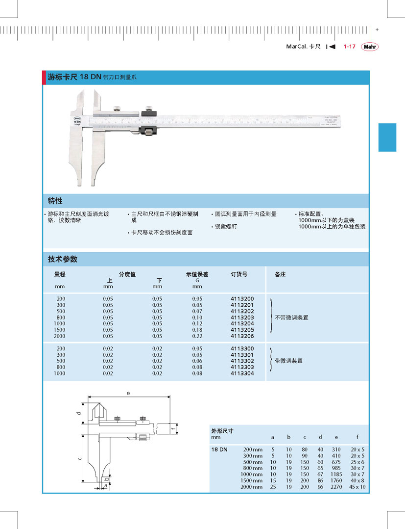 德國(guó)馬爾游標(biāo)卡尺18DN帶刀口測(cè)量爪0-2000mm