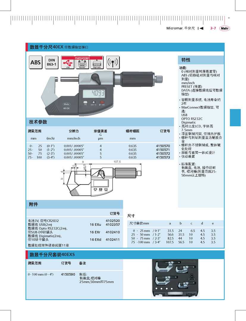 德國馬爾數顯千分尺40EX帶數據輸出4150570